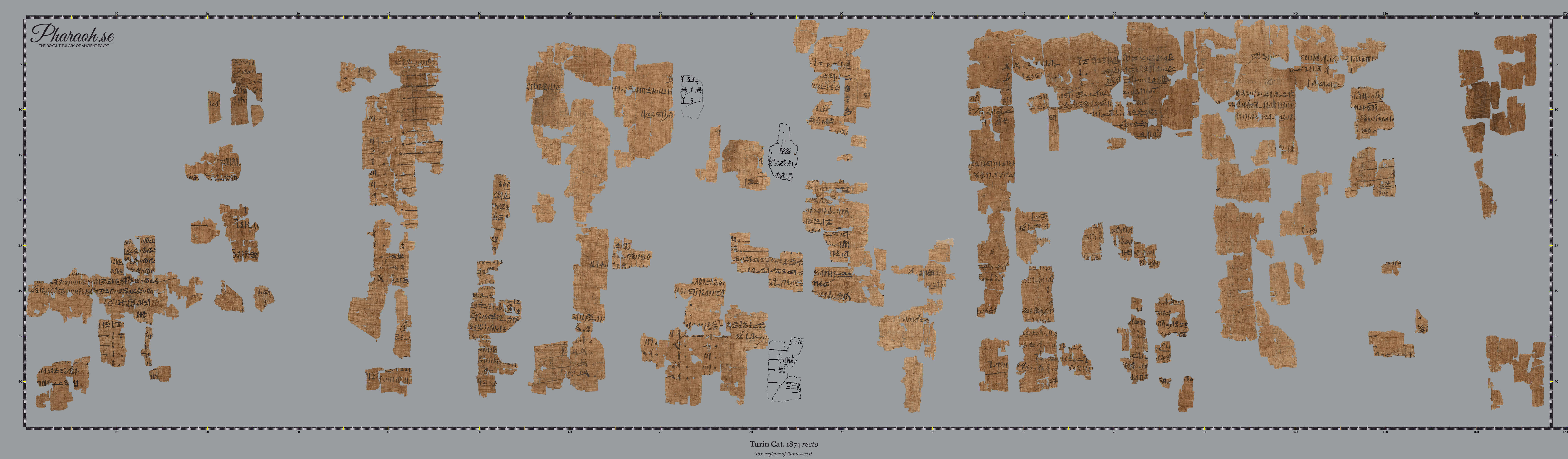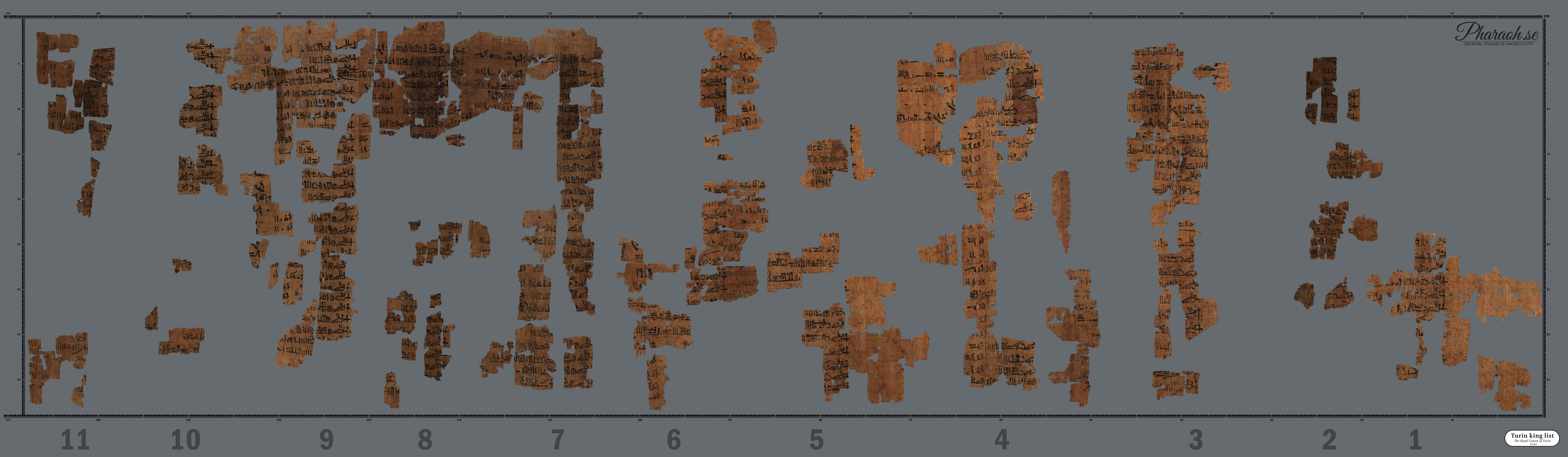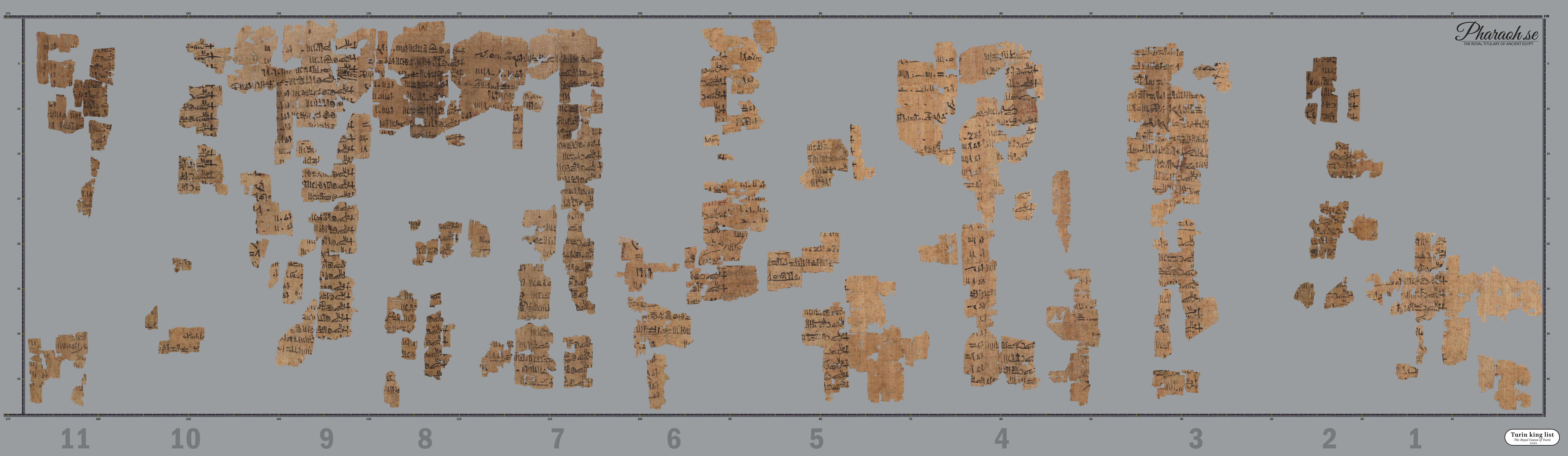 High Quality photos of the Turin King List were made available for free by the Musum in 2019. Very clear photos of the three panels are available on the Museo Egizio papyrus collection webpage (TPOP). Surprisingly, newer versions of the photographs are of lesser quality (Fall 2022) but include fragments not present in the first images. It should be noted that some of the fragments in these photos are in the positions fixed by Farina in the 1930s, and one fragment has even been rotated. The photos below are editied to align with the more current research. The 2022 restoration will be included when time permits.