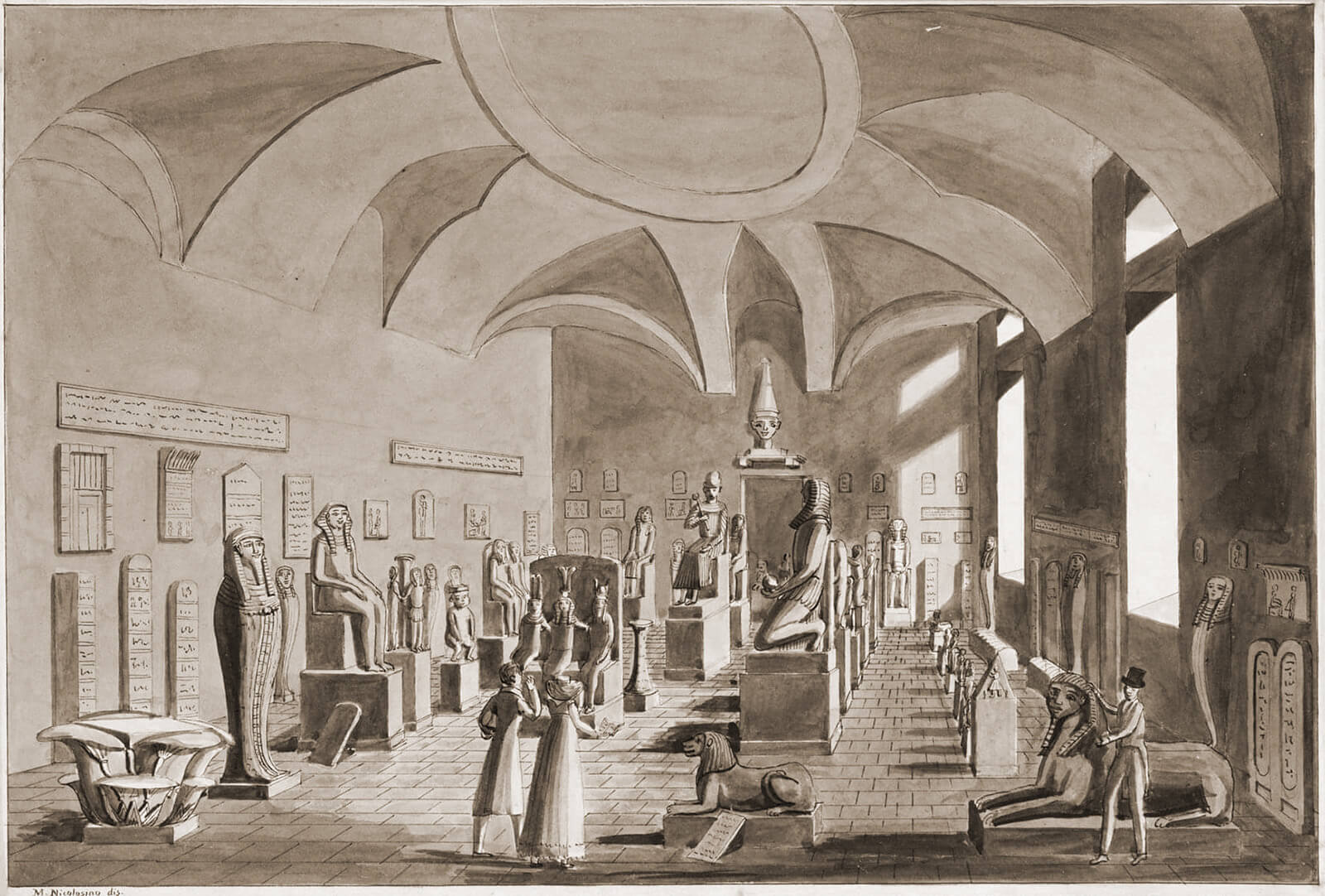 To that end, he arrived in Turin on the morning of June 7, 1824. Two days later he received the necessary documents from the Minister of the Interior, Count de Cholex, to begin his research, and, guided by his friend Count Balbo, President of the Royal Academy of Sciences in Turin, he entered the vast halls of the palace holding the newly acquired Drovetti Collection.