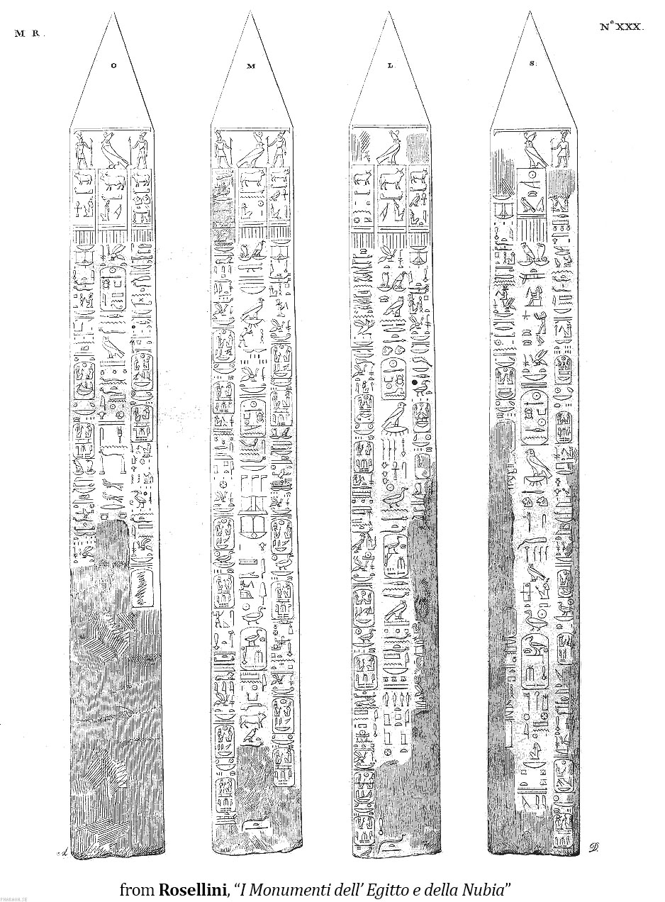 Egyptians. The ancient Egyptian name was Tekhenu. Several ancient Egyptian obelisks are known to have survived, but are dispersed