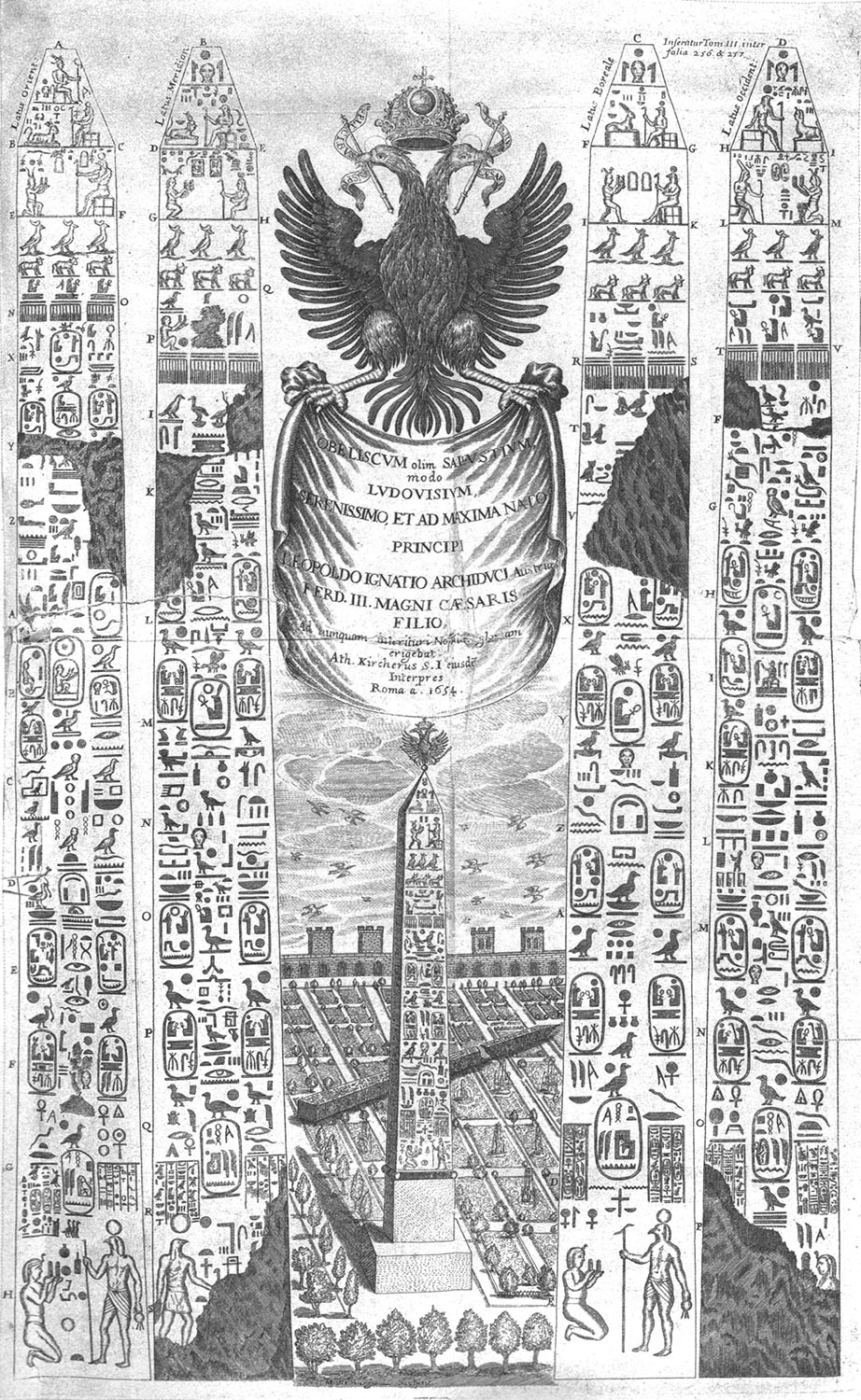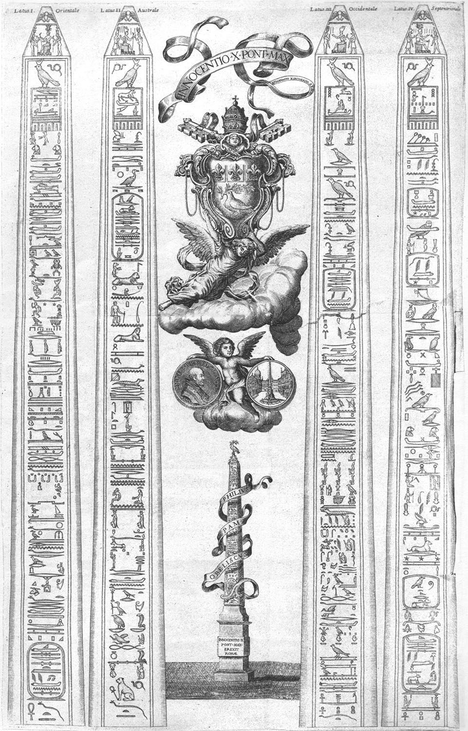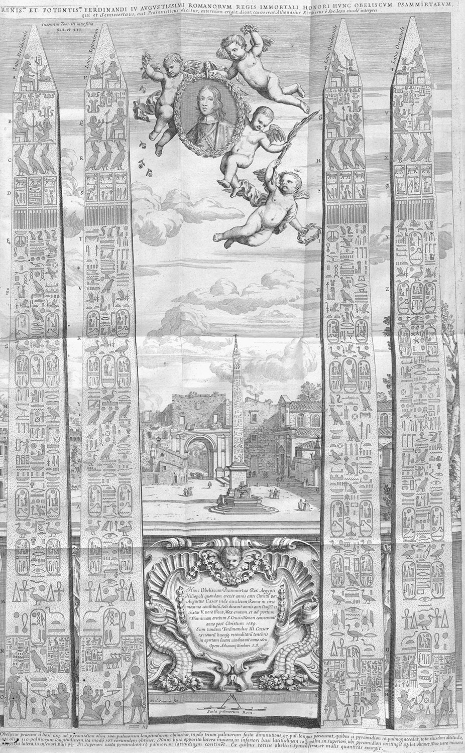 Commissioned from Egypt by Domitian and erected in Rome c. 80 AD, the inscriptions are of inferior Roman manufacture. It was moved to Circus Maxentius around 310, where it later toppled into five pieces. It was rediscovered and re-erected in 1651 in its current location — on top of the fountain of the Four rivers.