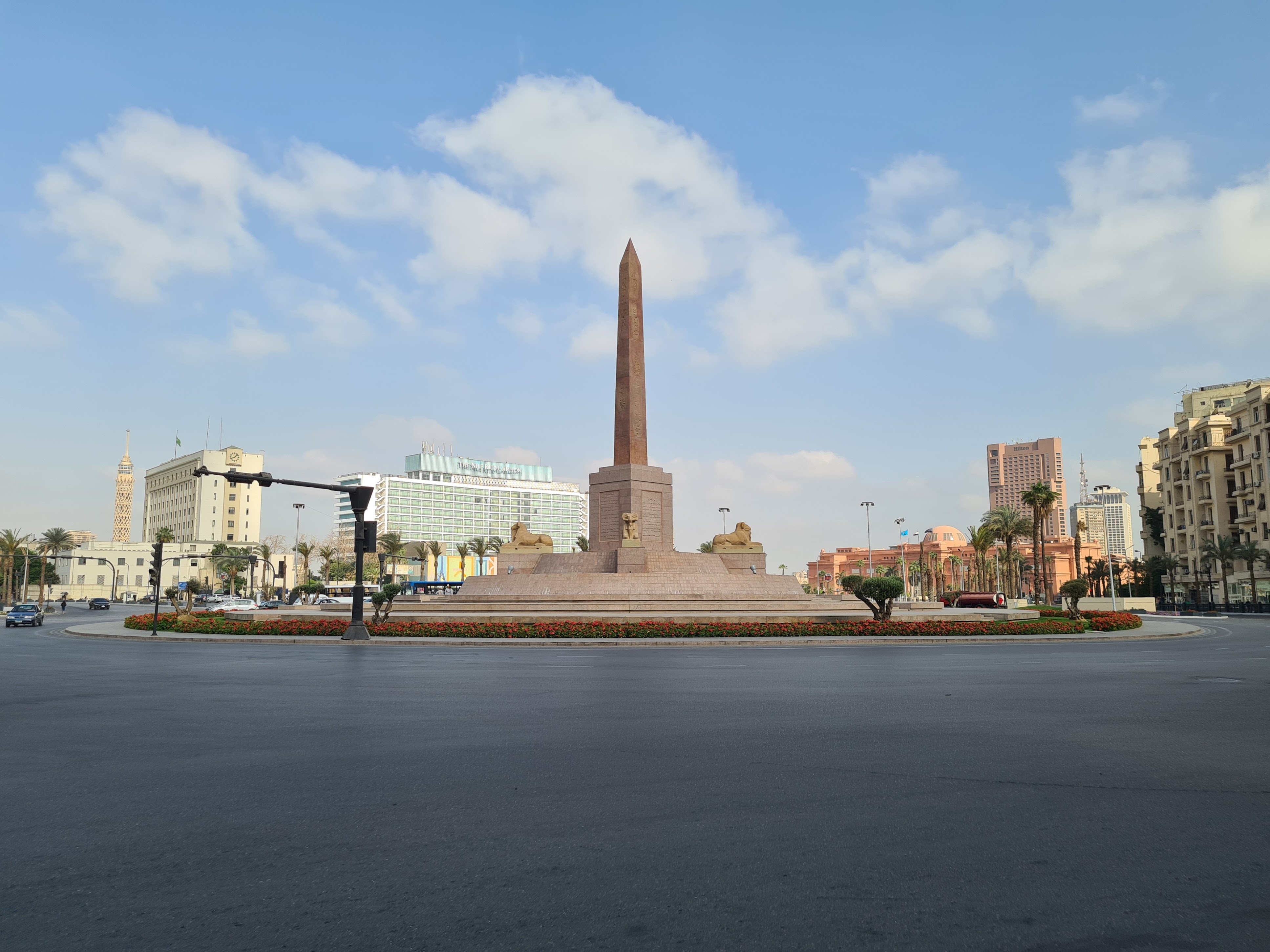 Tahrir Square was redeveloped in 2020 and an obelisk added at its center. This obelisk was reconstructed from several pieces of broken obelisk fragments from Tanis.